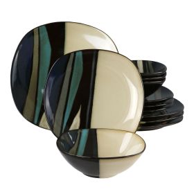 Hometrends Soho Lounge 12 Piece Square Stoneware Dinnerware Set in Grey and Black