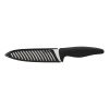 This Farberware Ceramic 6-inch Chef Knife is at the forefront of cutlery technology. Forged from zirconia a material second only to diamonds in hardness the resulting blade is extremely durable and unbelievably sharp. This knife will retain its cutting edge 10 times longer than steel blades and will not rust, stain or oxidize. The ergonomically designed, soft-grip handle provides exceptional comfort and durability. Sheath protects the blade and provides safe storage when not in use. Use only with a plastic or wood cutting board. Not intended for use with frozen foods, hard cheeses or meat with bones. Do not use for prying, twisting or applying force to the side of the blade. Do not drop or hit the knife on hard surfaces. Dishwasher safe, top rack only.